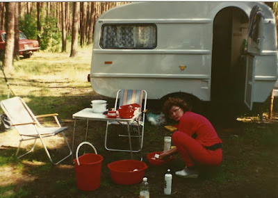 ustawiliśmy naszą przyczepkę na leśnym polu biwakowym między